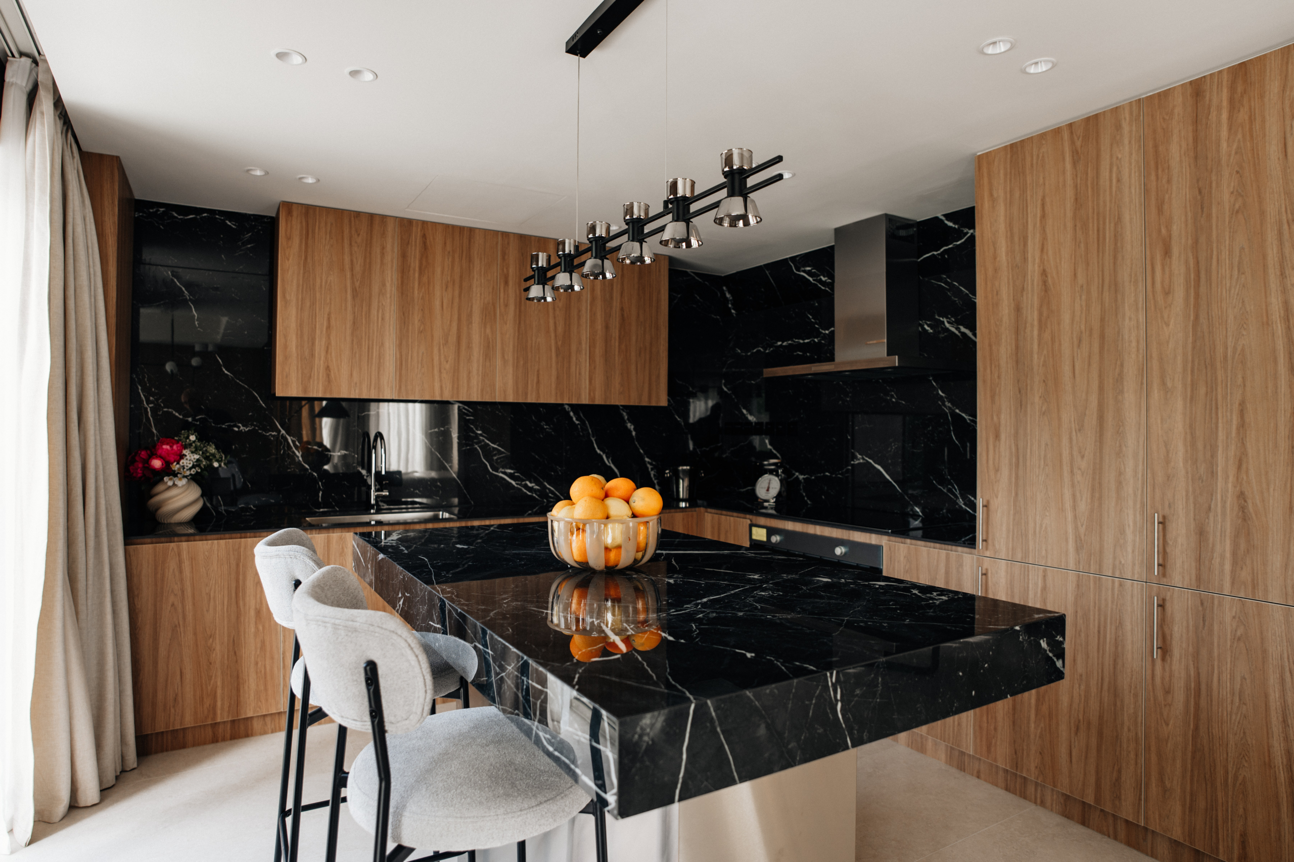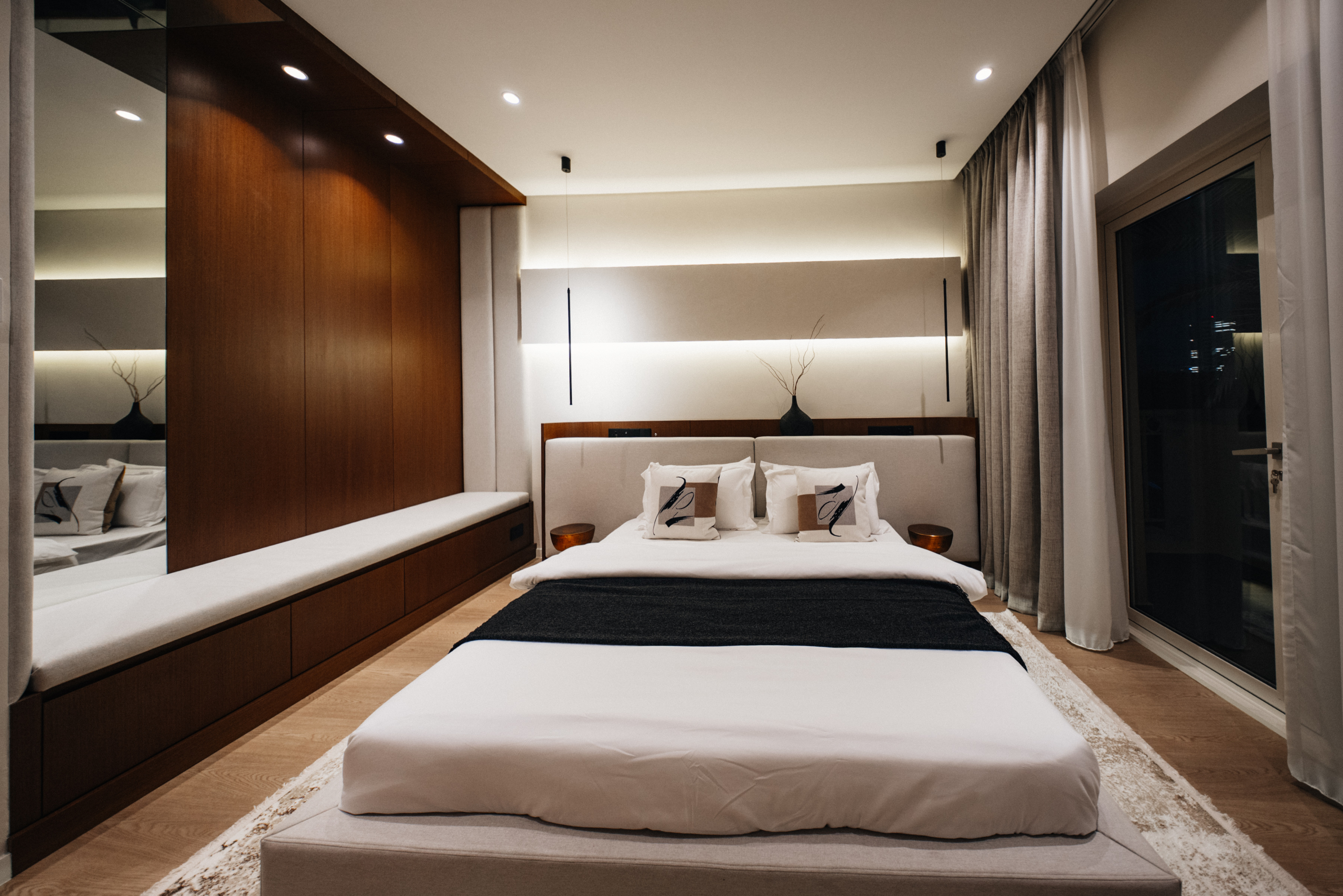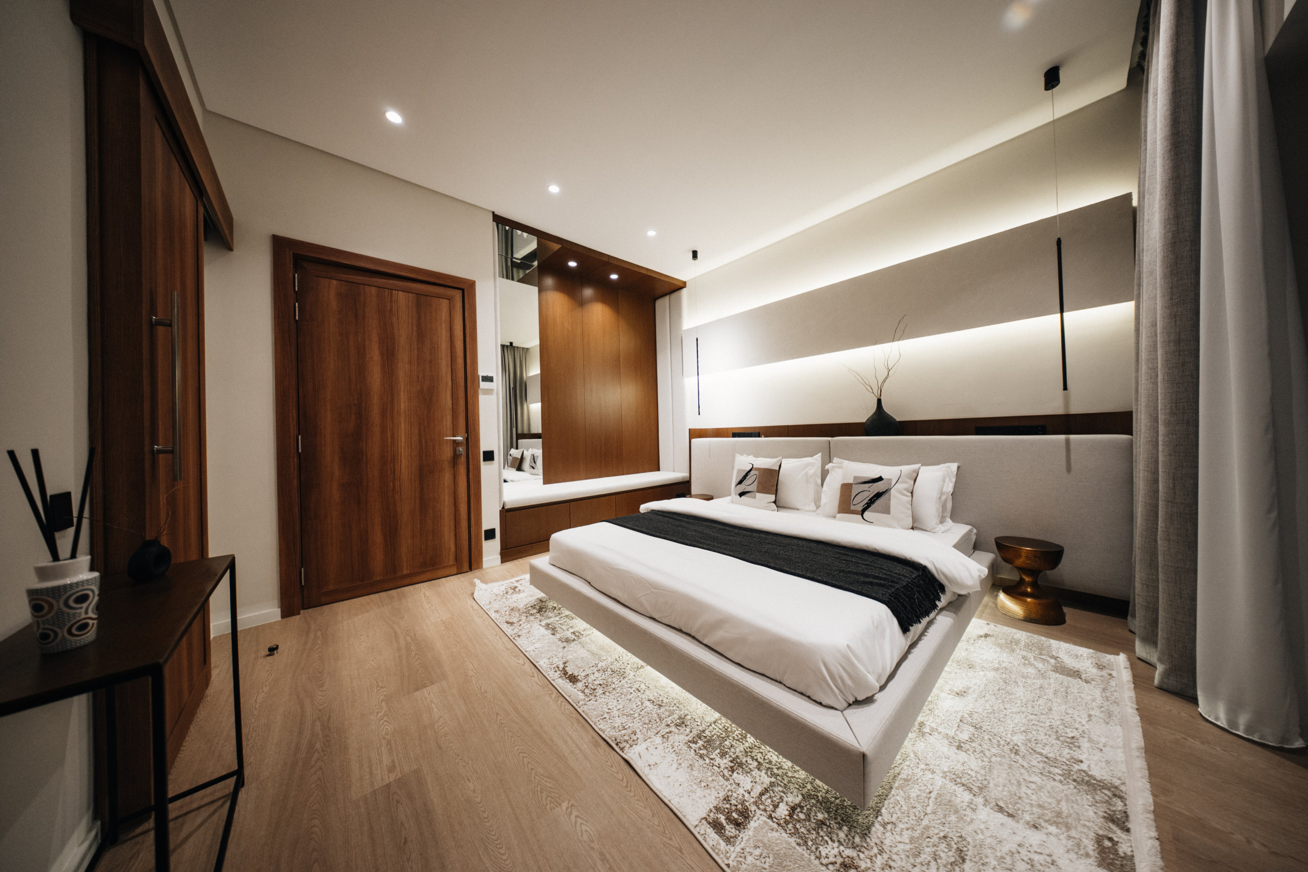 The first floor houses three bedrooms, all with custom boutique fitted wardrobes.